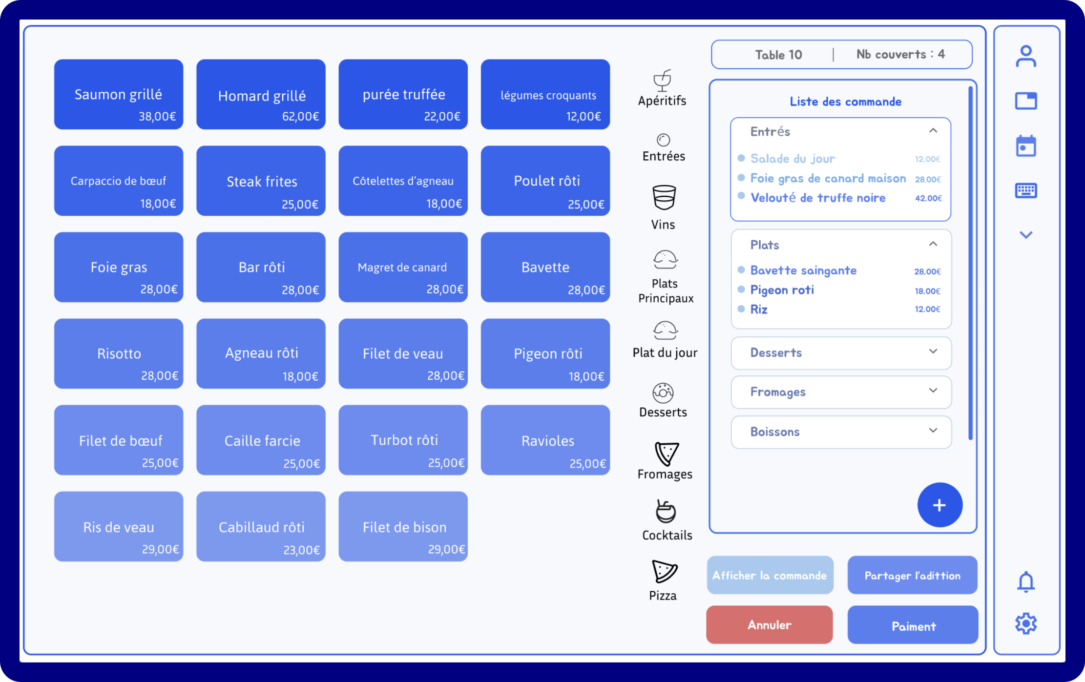 Il simplifie la prise de commande et l’encaissement, que ce soit par carte bancaire, espèces ou tickets restaurant, tout devient simple, rapide et fiable.